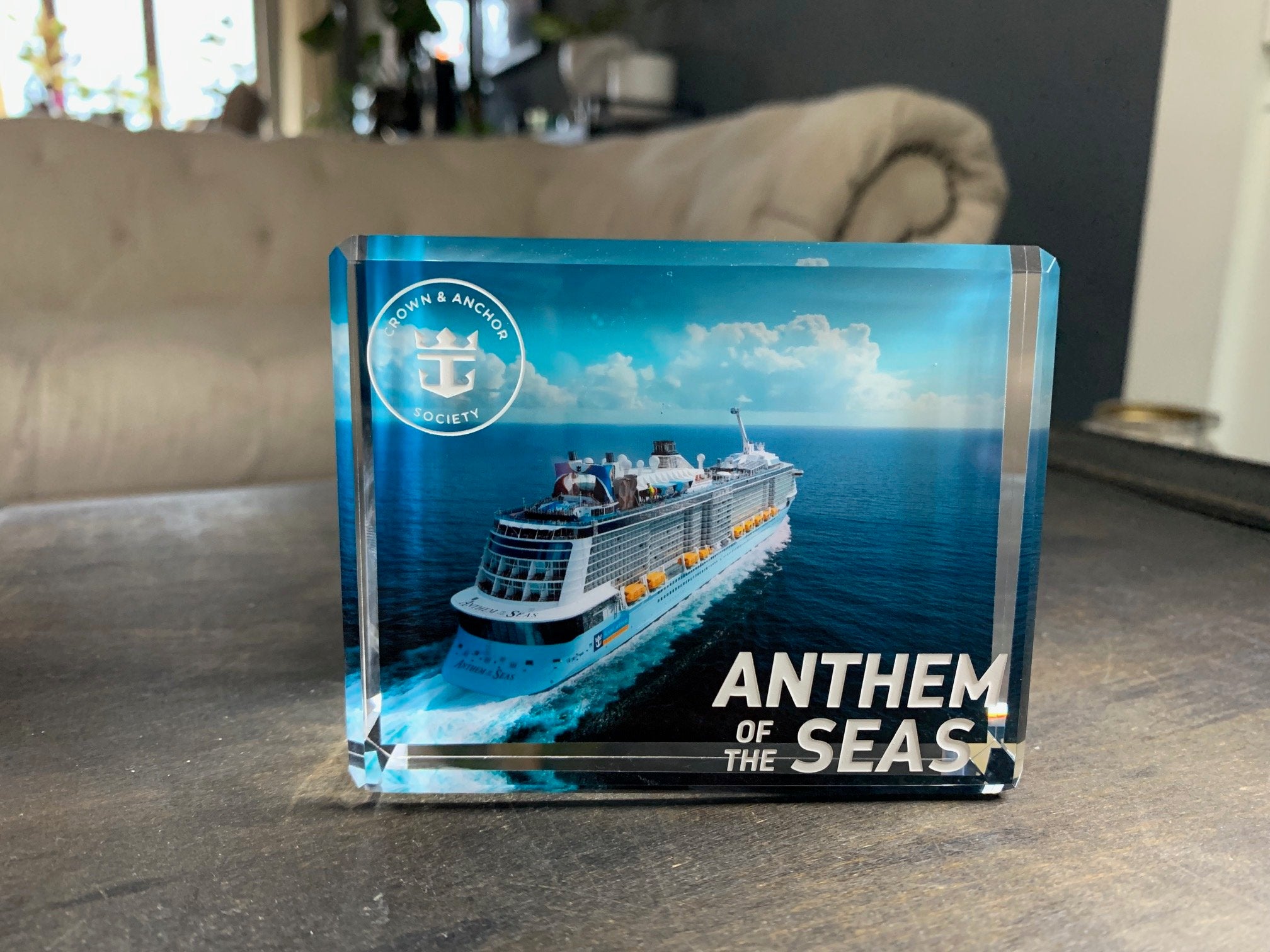 Royal Caribbean (RCCL) has debuted a brand new, full colour style crystal block. Now this has divided avid RCCL cruisers and preferred the old style block which was just clear. The new style blocks probably look nicer in person and the picture doesn’t do it justice but we love it! It’s a nice memento from our Anthem of the Seas cruise.