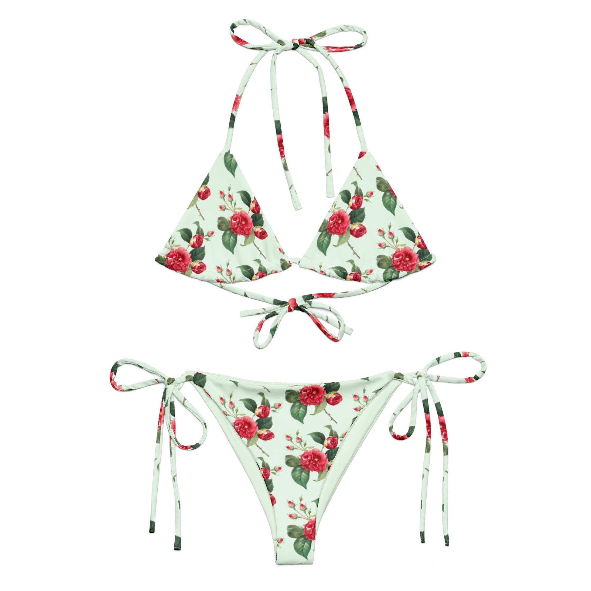 • To make your All-Over Print Recycled String Bikini last longer, thoroughly rinse it off after each use and get rid of any chlorine/salt residue.